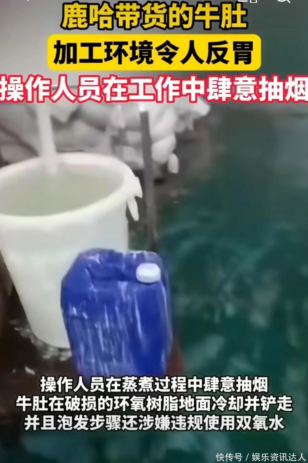 更离谱的是,工厂还涉嫌用双氧水漂白毛肚,但配料表里压根不提这事。