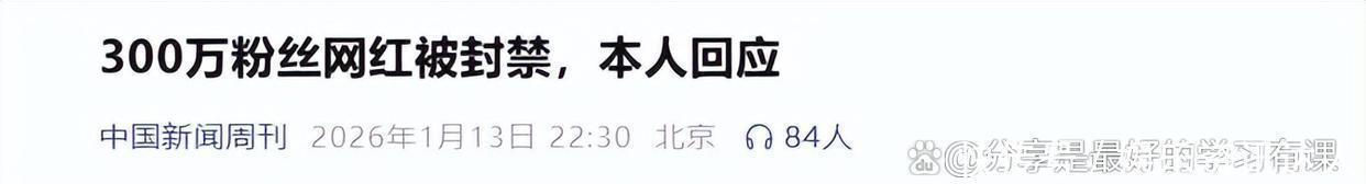 中国新闻网|300万粉丝网红被封禁,本人回应.2026