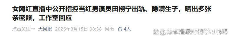 大河报|女网红直播中公开指控当红男演员田栩宁出轨、隐瞒生子,晒出多张亲密照,工作室回应.2026