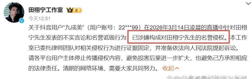随后,田栩宁方以“名誉侵权”起诉九成美,态度十分强硬。