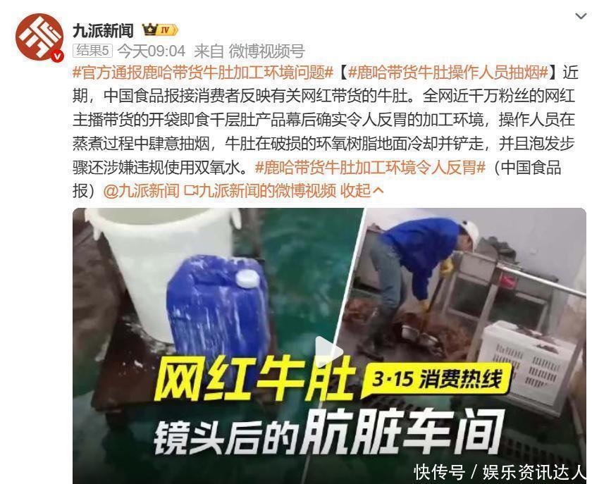 315期间,记者暗访发现,鹿哈直播间主推的毛肚,工厂问题严重: