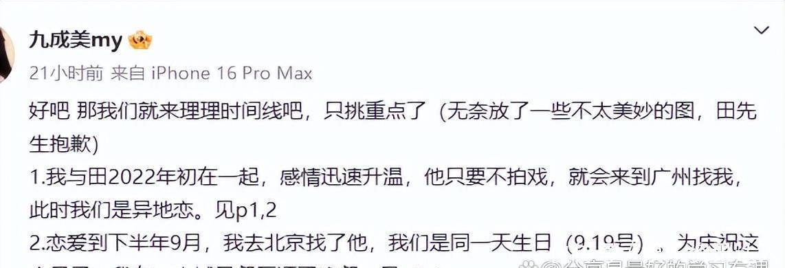 据九成美所说,她和田栩宁在2022年初在一起,相恋两年。